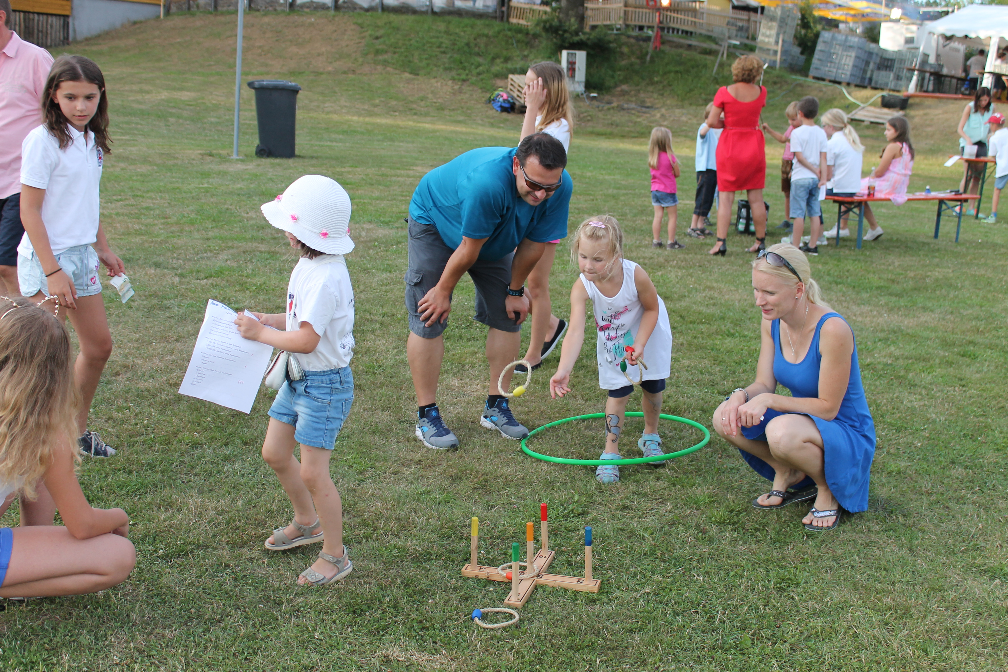 Die jüngsten Besucher konnten sich beim Spieleparcour der Jugendwasserwacht austoben. Beim Dosen- und Ringewerfen waren Treffsicherheit gefragt. Etwas Geschick erforderte auch einen Kugelschreiber an einer Schnur in eine Wasserflasche zu bringen. Bei der Erbsenschlagmaschine waren Schnelligkeit und Treffsicherheit gefordert. Sackhüpfen machte offensichtlich auch viel Spaß. Für jede geschaffte Station gab es für jedes Kind einen Stempel und mit der vollen Stempelkarte erhielt es einen kleines Geschenk. Beim Kinderschminken konnten konnten die Kleinen in Tiger, Schmetterlinge, Prinzessin oder Marienkäfer verwandeln lassen. Aus den Leuchtknickstäben wurden Figuren gesteckt und mit Leuchbrillen und -ohrringe wurden die Gesichter der Kinder erhellt.