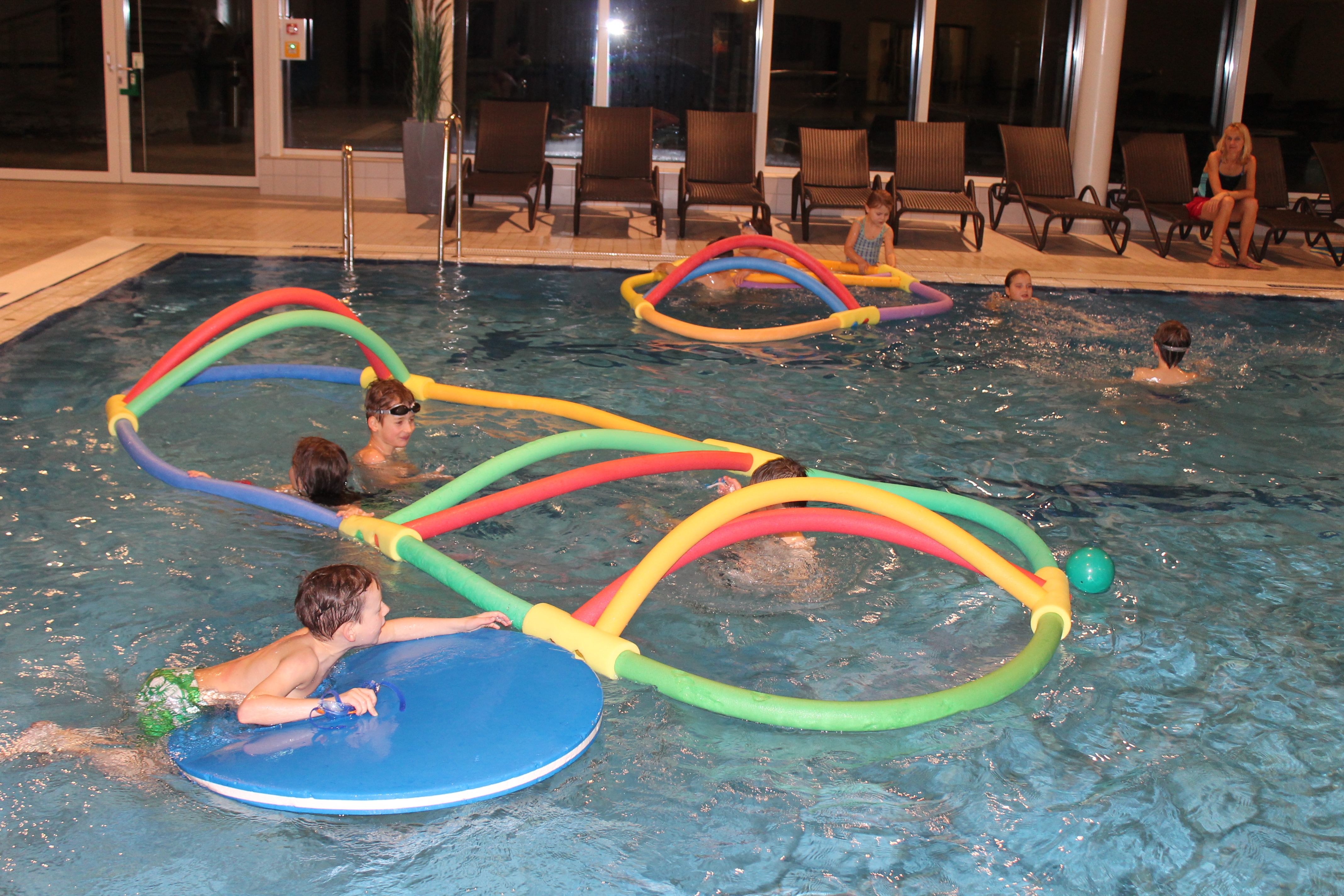 Beim letzten Übungsabend vor den Weihnachtsferien war für die Kinder der Wasserwacht Abwechslung geboten. Statt des üblichen Schwimmtrainings war für etwa 60 Kinder Spiel und Spaß angesagt. Mit den Schwimmscheiben und aus den Schwimmnudeln wurden tolle Inseln gebaut. Bei Ballspielen, Springen und Tauchen hatten die Jüngsten auch sichtlich viel Spaß. Jugendleiterin Stefanie Kurzendorfer freute sich, dass der Nachwuchs immer fleißig trainiert. Jedes Kind bekam noch ein kleines Nikolaussäckchen geschenkt. Bei Kinderpunsch, Lebkuchen und Spekulatius ließ man das Jugendwasserwachtsjahr ausklingen. Die beiden Vorsitzenden Martin Kolbeck und Andreas Dietl bedankte sich beim Betreuerteam für ihren Einsatz im wöchentlichen Training.