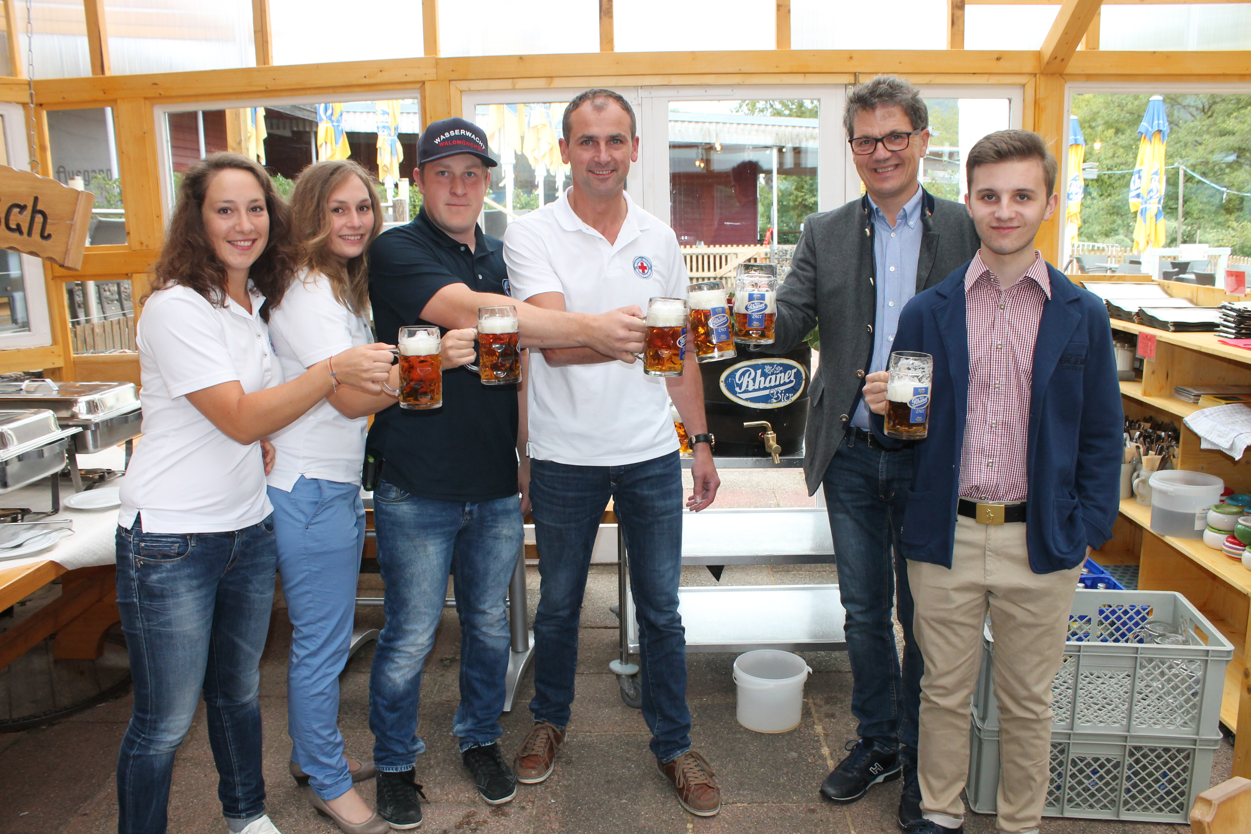 Am Freitag, den 20. Juli findet ab 18 Uhr wieder das traditionelle Seefest der Wasserwacht Waldmünchen statt. Deshalb hat die Vorstandschaft um Vorsitzenden Martin Kolbeck und einige aktive Mitglieder mit Dr. Alois Plößl und dessen Sohn Max den Gerstensaft getestet und auf das Seefest 2018 angestoßen. Testurteil: sehr gut! Neben den Bier der Rhanerbrauerei gibt es auch alkohlfreie Getränke sowie Rot- und Weißwein. Kulinarisch verwöhnt werden die Gäste mit Gyros, Grillspezialiäten, Calamares und Käse. Aus der Wasserwachtskonditorei gibt es Kuchen und Torten. Musikalisch umrahmt wird der Abend mit der Band Pegasus aus Landshut. Für die Tänzer steht auch ein Tanzpodeum zur Verfügung. Die jüngsten Besucher können sich beim Spielestand der Jugendwasserwacht austoben. Auch das Kinderschminken darf natürlich nicht fehlen. Die Jugendlichen werden Leuchtknickbänder verkaufen. Die Lampions und Fackeln entlang des Sees sorgen für ein romantisches Ambiente. Das traditionelle Feuerwerk wird zur später Stund den Himmel verzaubern. In der Bar gibt es verschiedene Cocktails – auch für die Minderjährigen sowie Autofahrer.