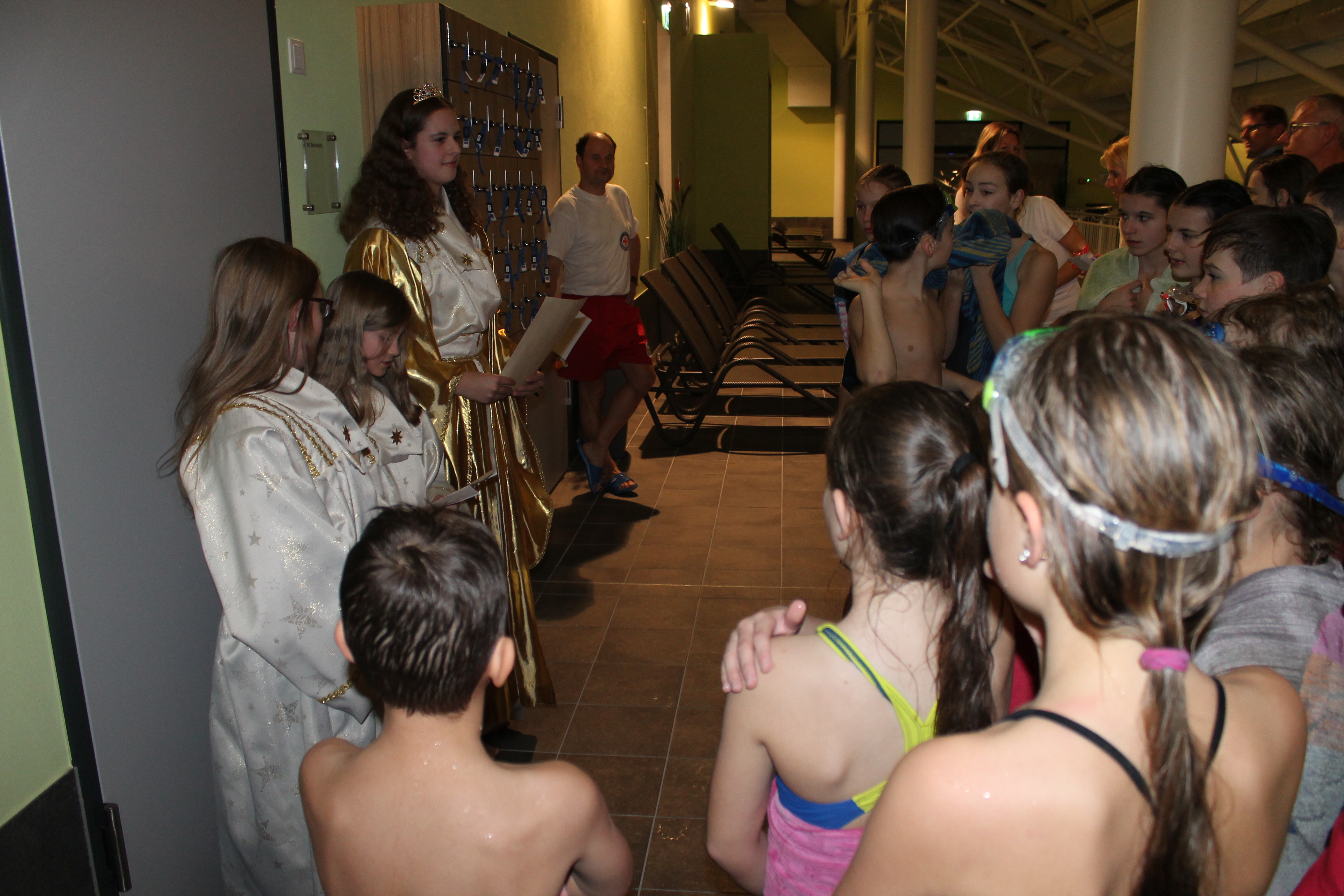 Christkind und die Engerl schauen beim Weihnachtsschwimmen der Jugend vorbei