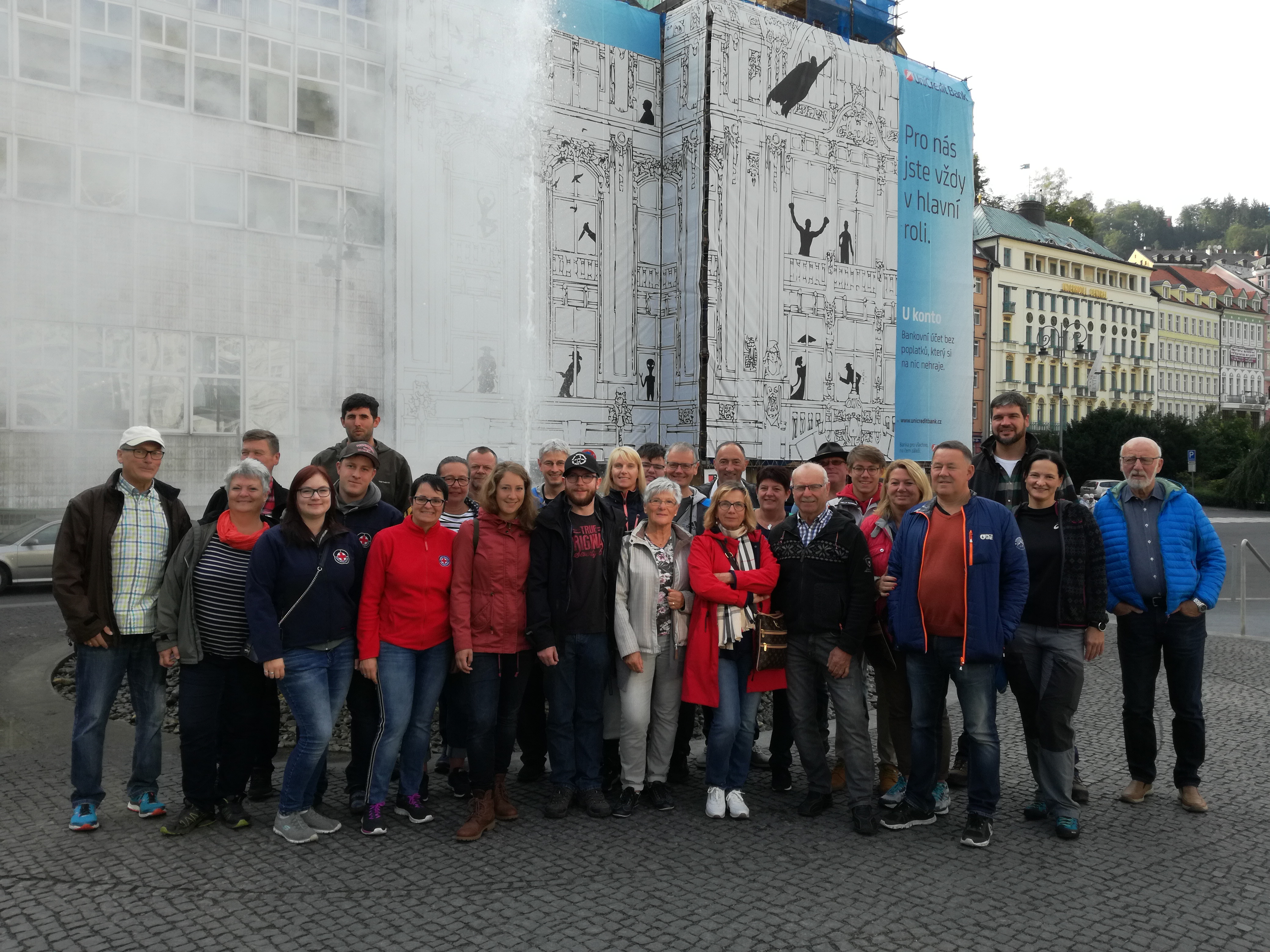Der Ausflug der Wasserwacht Waldmünchen führte dieses Mal ins Nachbarland nach Tschechien. Zuerst ging es für die 30 Wasserwachtler nach Elbogen ( Loket). Die Stadt liegt in der Biegung des Flusses Ohře (Eger), der hier inen Felsen umfließt und einen gebeugten Arm ähnelt, daher kommt auch der Name Elbogen (Loket). Hier bekamen sie eine interessante Stadtführung mit einem Reiseleiter. Es durfte natürlich auch der Besuch der Burg, die im 13. Jahrhundert zum Schutz der böhmischen Westgrenze errichtet wurde, nicht fehlen. In einer tollen mittelalterlichen Atmosphäre konnte man im Burgrestaurant sich stärken. Anschließend wanderten die Waldmünchener nach Aich (Doubí), einen Stadtteil von Karlsbad. Am Abend konnte man sich im Wellnessbereich des Hotels relaxen. Am zweiten Tag erhielt man eine Stadtführung von Karlsbad durch die Kuranlage sowie am Theater und prachtvollen Fassaden vorbei. Die Stadt wurde im 14. Jahrhundert von Karel IV. Gegründet. Der Legende nach ließ der Kaiser die Stadt unmittelbar nach Entdeckung der heißen Quellen bei einer Jagd erbauen. Auf dem Weg nach Hause, machte man einen Zwischenstopp in Windischeschenbach. Hier besichtigte man das GEO-Zentrum, eine moderne Umweltbildungsstätte. Geowissenschaftler bohrten hier 9.101 m tief in die harten Gesteine der oberpfälzischen Erdkruste. Das tiefste Loch der Welt in hartem kristallinem Festgestein. Am Ende waren sich alle einig: Es war ein tolles Wochenende! Die Vorstandschaft bedankte sich bei Josef Pfeifer für die Fahrt.