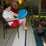 Das Programm war für Jung und Alt. Da die Edelsteinsuche im Kinderferienprogramm immer sehr gut ankommt, durften die kleinen Gäste auch an diesem Tag nach ihren Schätzen tauchen. Ab 18 Uhr durften auf einer Bahn unter der Leitung von Stefanie Kurzendorfer eine Gruppe Kinder das Kraulen üben – auch mit Flossen. Auf der anderen Bahn durften die Kinder mit Annalena Maurer das Brustschwimmen verbessern. Ab 19 Uhr zeigten Peter Bart und Melanie Kurzendorfer die Rettung mit einem Wurfseil und mit einem Rettungsring. Auch eine verletzte Person an Land bringen wurde geübt. Ab 20 Uhr durfte eine Gruppe Erwachsene bei der zweiten Vorsitzenden Stefanie Kurzendorfer das Kraulschwimmen trainieren. Es wurde der Beinschlag und der Armzug und auch die richtige Atemtechnik aufgezeigt. Die Feuerwehr Waldmünchen war auch zu Gast und übte mit der Jugendleiterin das Brustschwimmen. Anschließend testeten sie das Schwimmen mit Kleidung. Da auch viele kleine Badegäste da waren, konnte diese mit Barbara und Martin Kolbeck sowie Renate Lüftner das Brustschwimmen mit Schwimmnudel und Brett üben. Fazit: Eine rundum tolle Veranstaltung! Viele Schwimm- und Saunagäste zeigten auch ihre Anerkennung und Verbundenheit zur Wasserwacht und gaben etwas in die Spendenbox an der Kasse.