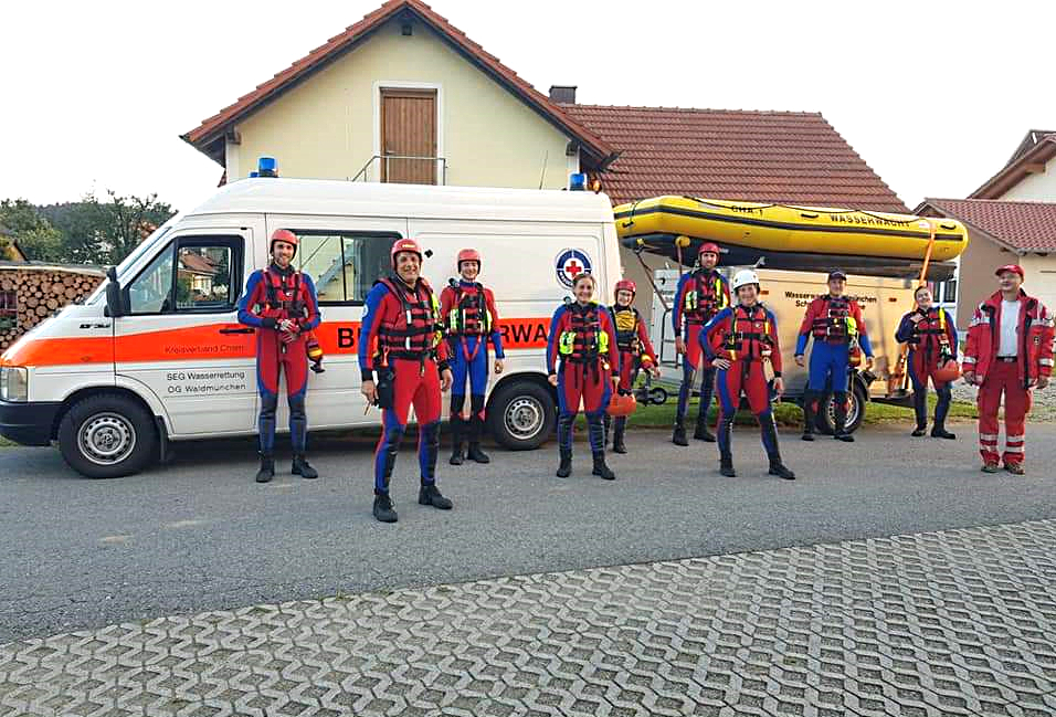 Auch die Schnelleinsatzgruppe (SEG) durfte im Sommer mit Auflagen üben. Bei der Großübung mit den Feuerwehren am Perlsee waren Einsatzkräfte dabei. Die Suche nach einem vermissten Kind entlang der Schwarzach bei Ast – Hirschhöf bei Dämmerung bzw. Nachts wurde erprobt. Bei der Kreiswasserwachtsübung am Blaibacher See nahmen auch vier Mitglieder teil. Hier wurde ein Kanuunfall simuliert, bei dem zwei Boote gekentert sind. Beim ersten Triathlon am Perlsee wurde die SEG für die Streckenabsicherung beauftragt. Das Gesellschaftliche wie die Wanderungen, Stammtische, Gansessen usw vermisst die Mannschaft um Andreas Dietl sehr.